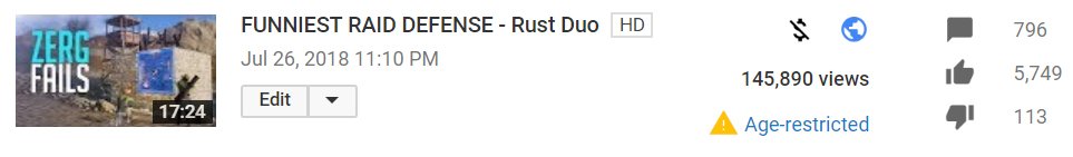 This is fucked mate.. It was literally green the entire time and then age-restricted out of no where, even with Rust Censoring. @YTCreators please help @TrustedFlaggerpic.twitter.com/iKDvaXbJi0