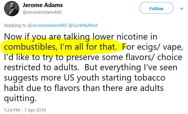 So, marking time, you’re switching it up now to condemn adult smokers to death who are just seeking a better alternative in