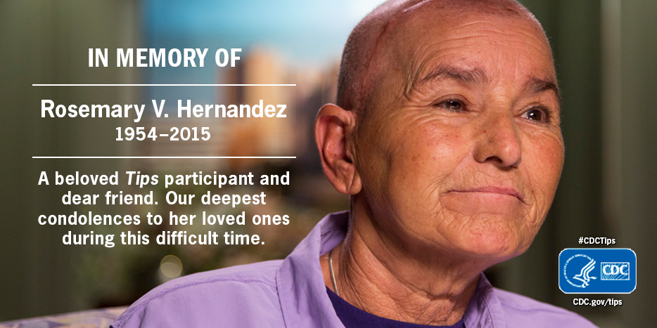 We’d like to take a moment to honor beloved #CDCTips participant, Rose Hernandez, who passed away.pic.twitter.com/igyuweHsGs @CDCTobaccoFree