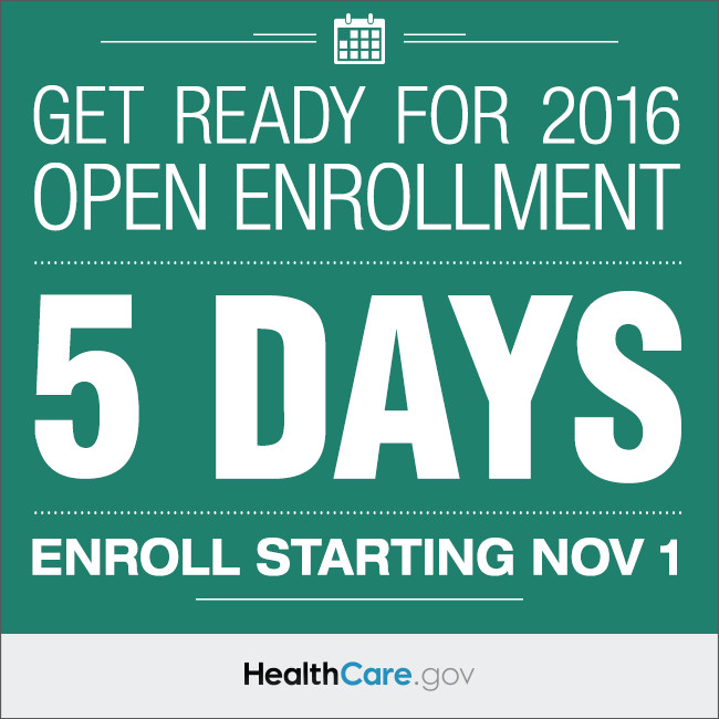 Open enrollment is only 5 days away! On Nov. 1 join millions of Americans & #GetCovered http://www.healthcare.gov #ACApic.twitter.com/Qb6yDw2J7F