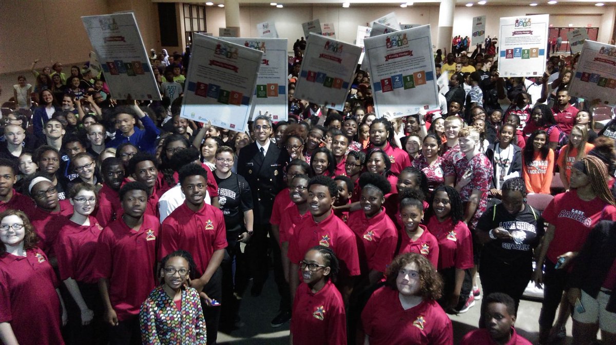 This is what a pic w/ 1000 kids who are excited about their community's health looks like! #StarPower #HealthyKidspic.twitter.com/Hk32hYDkHL