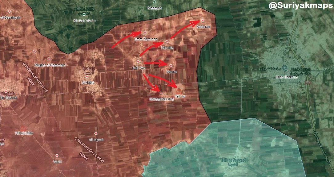 14/8/2019: S.W. #Idlib: #SAA #Tiger_Forces liberated Khirbat Murshid, Tell As, Mantar, Umm Zaytunah, Mu`allis & Kafartab (2,5 Km to KhanSheikhun)