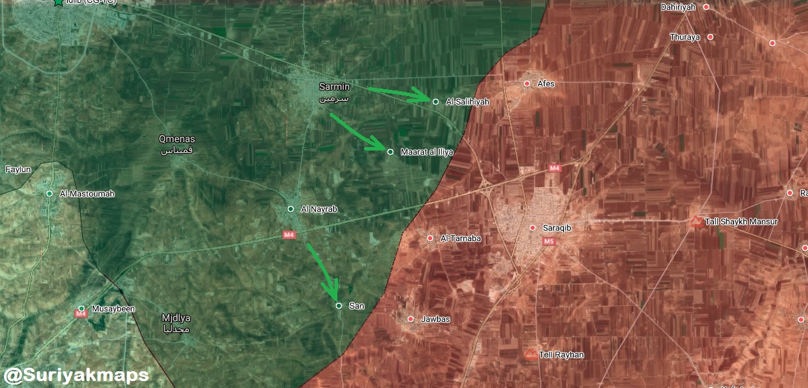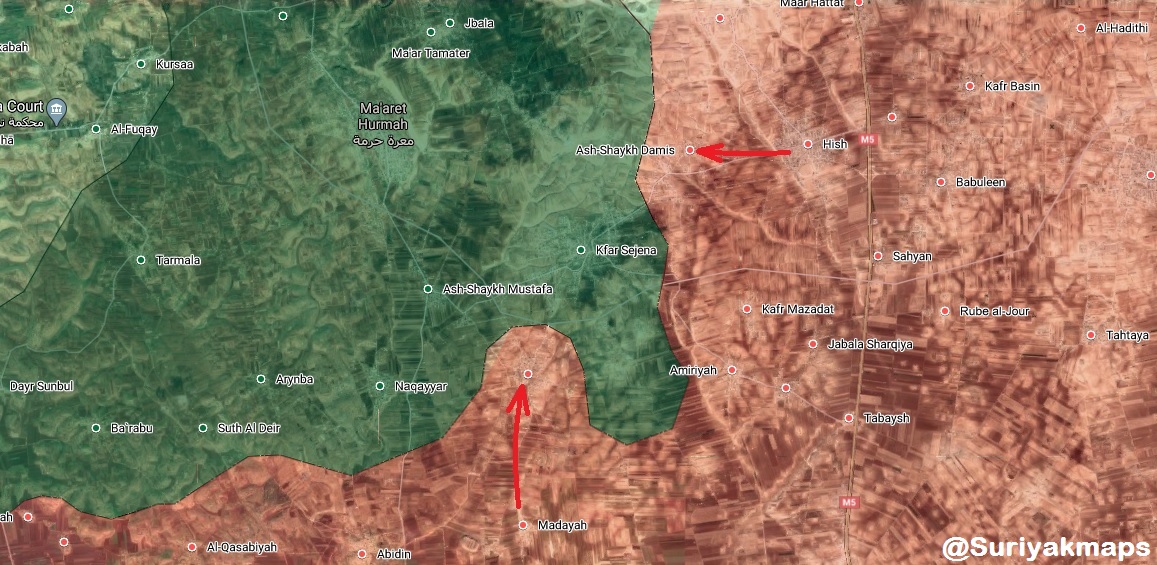 - S. #Idlib: #SAA reentered in Tal Nar & liberated Kafr Sejena, Shaykh Mustafa, Naqayyar, Arynba, Suth Al Deir, Tall al Karm, Maarr Zita, Maarrat Hurmah, Jbala, Maar Tamater & Maarr Seen - E. #Idlib: #HTS/#NLF recaptured Nayrab, clashes in Maarat Iliya #Op_Redemption4 #IdlibDawnpic.twitter.com/3ntt2Ocmft