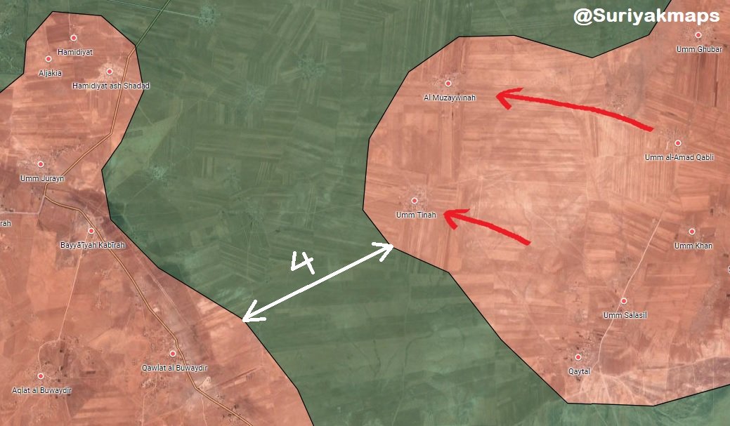 S.E. #Aleppo #SAA liberated Umm Tinah & Al Muzaywinah villages; 4 km to create pocketpic.twitter.com/GYgMuZ8nyB