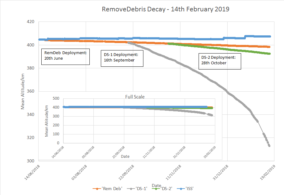 @UniOfSurrey DS1 Cubesat has lost almost 100km since deployment and is now at 300km altitude. Re-entry predictions current centre around March 4th.#racefromspace@SpaceAtSurrey#removedebrispic.twitter.com/iSB4Xh3Uuk