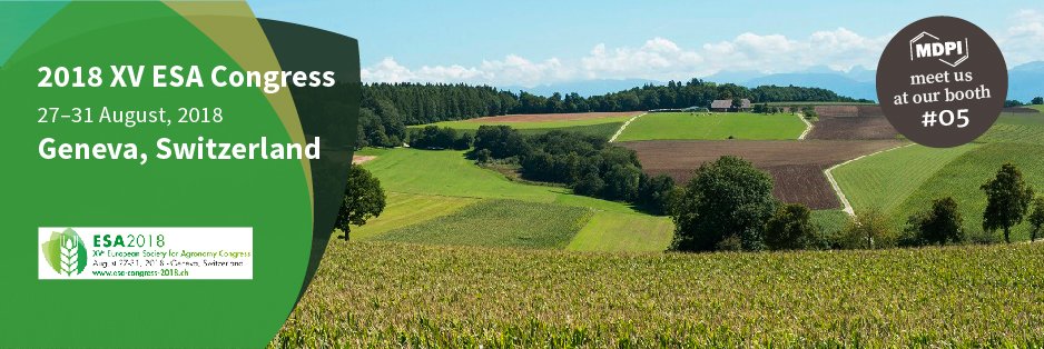 Come and meet us at the 15th European Society for Agronomy Congress in Geneva, Switzerland, 27–30 August 2018 #ESA2018 #mdpi at booth #05
