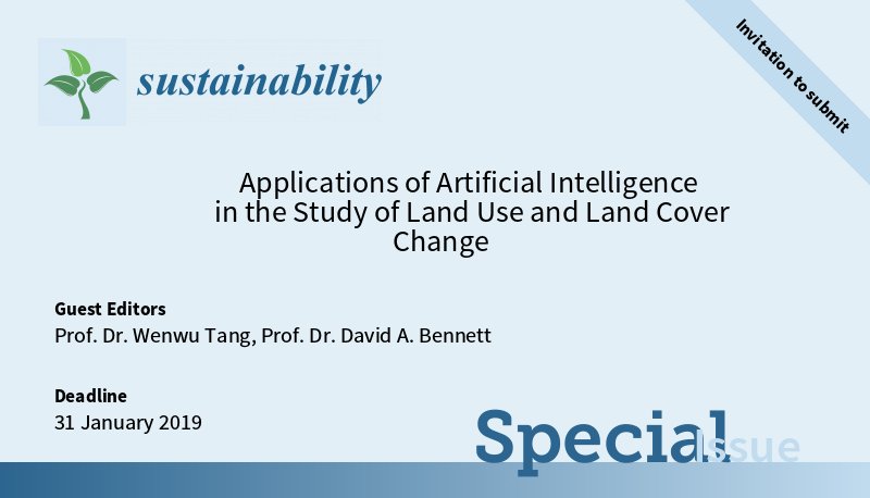Invitation for submission!! New special issue guest edited by Dr. Wenwu Tang from @unccharlotte, Dr. David A. Bennett from @uiowa. Read more at: http://www.mdpi.com/journal/sustainability/special_issues/Land_Use_and_Land_Cover_Change …pic.twitter.com/M1pf6Dhe70