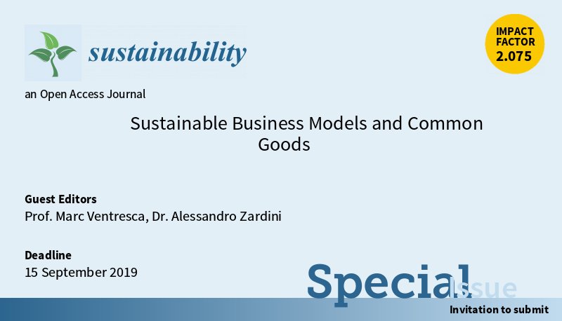 New special issue “Sustainable #businessmodel and Common Goods”, edited by Prof. Marc Ventresca @marcventresca (University of Oxford) @UniofOxford and Dr. Alessandro Zardini (University of Verona) @UniVerona. Read more at: https://www.mdpi.com/journal/sustainability/special_issues/Sus_Business_Model …pic.twitter.com/ddtq6LIiIv