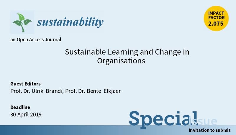 New Special Issue “Sustainable Learning and Change in #Organisations” is open for submission, edited by Prof. Dr. Ulrik Brandi and Prof. Dr. Bente Elkjaer from Aarhus University @AarhusUni. #lifelonglearning Read more at: https://www.mdpi.com/journal/sustainability/special_issues/SLCO …pic.twitter.com/wtQSoQ8W9K