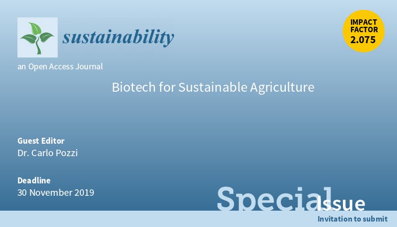 #mdpisustainability New Special Issue, edited by Dr. Carlo Pozzi from University of Milan @LaStatale, "Biotech for Sustainable Agriculture" is open for submissions! #sustainableagriculture #biotechnology