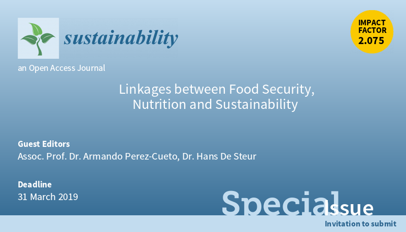 New Special Issue “Linkages between #foodsecurity , #nutrition and #sustainability” is open for submission, edited by Assoc. Prof. Dr. Armando Perez-Cueto from @uni_copenhagen and Dr. Hans De Steur from @ugent. #FoodSafety #HealthyFood Read more at: https://www.mdpi.com/journal/sustainability/special_issues/Food_Security_Nutrition_Sustainability …pic.twitter.com/EoG9d6VL0t