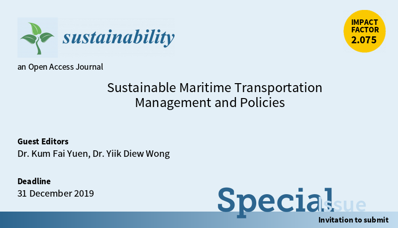 New Special Issue “#Sustainable #maritime #Transportation Management and Policies” is open for submission, edited by Dr. Kum Fai Yuen from @CAU_News and Dr. Yiik Diew Wong from @NTUsg.