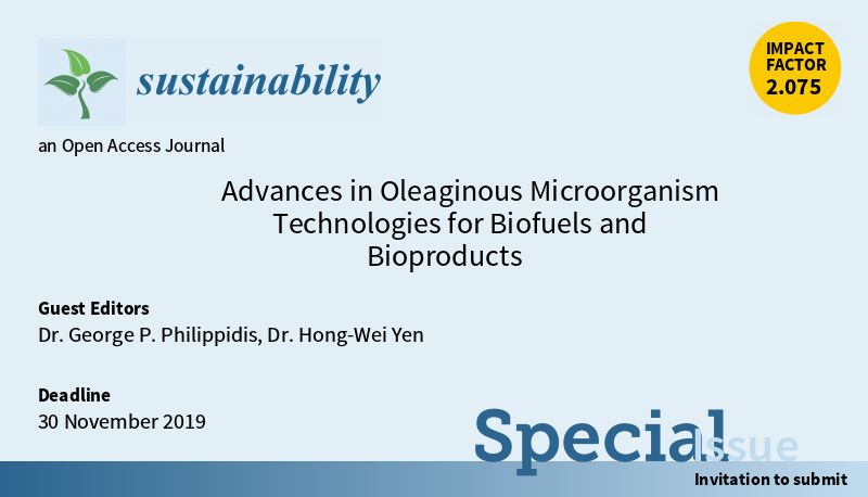 New Special Issue “Advances in Oleaginous Microorganism Technologies for #Biofuels and #Bioproducts” is open for submission. #biomass Guest Editors: Dr. George P. Philippidis from @USouthFlorida and Dr. Hong-Wei Yen from Tunghai University. Read more at: https://www.mdpi.com/journal/sustainability/special_issues/OleaginousMicroTech_BiofuelsBioproducts …pic.twitter.com/lv9il4YVBr