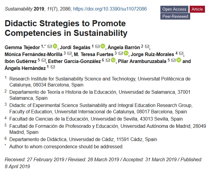 #mdpisustainability Didactic Strategies to Promote #Competencies in #Sustainability by Gemma Tejedor et al. #HigherEducation #SustainableDevelopment #competence #knowledgemanagement