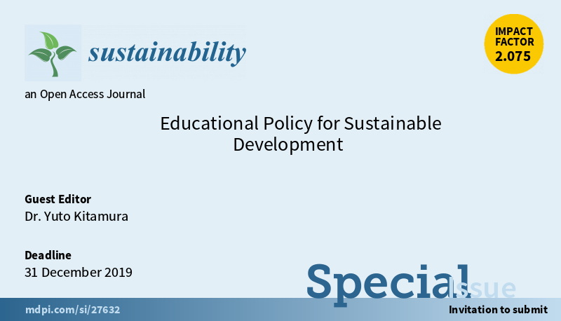 #CallforPapers New Special Issue “#educational #policy for #SustainableDevelopment” is open for submission, edited by Dr. Yuto Kitamura from the University of Tokyo @UTokyo_News_en #SDGs