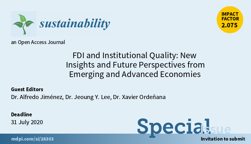 New Special Issue “#FDI and #InstitutionalQuality: New Insights and Future Perspectives from Emerging and #AdvancedEconomies”, edited by Dr. Alfredo Jiménez @KedgeBS, Dr. Jeoung Y. Lee @UniversityLeeds, Dr. Xavier Ordeñana @espol. #EmergingMarkets https://www.mdpi.com/journal/sustainability/special_issues/FDI_Institution …pic.twitter.com/kdPCX5ArWM