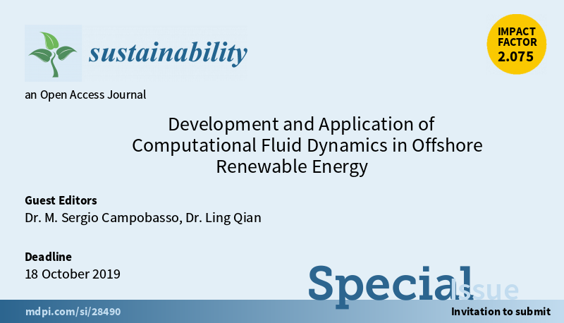 New Special Issue “Development and Application of Computational Fluid Dynamics in #offshore #renewable #Energy” is open for submission, edited by Dr. M. Sergio Campobasso @LancasterUni and Dr. Ling Qian @ManMetUni https://www.mdpi.com/journal/sustainability/special_issues/DevelopApplication_ComputFluidDynamics …pic.twitter.com/lunY7kGF7Q