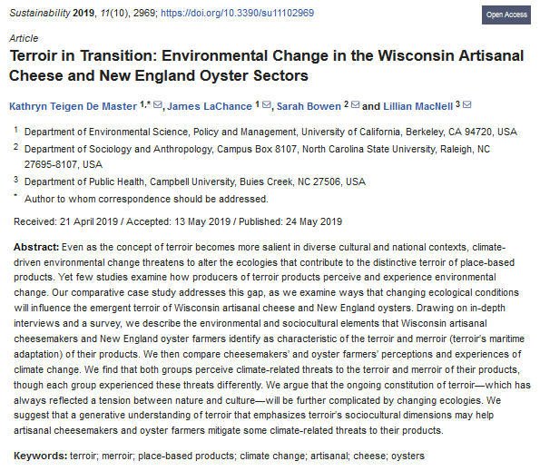 #mdpisustainability Terroir in Transition: Environmental Change in the Wisconsin Artisanal Cheese and New England Oyster Sectors https://www.mdpi.com/2071-1050/11/10/2969 … @Sus_MDPIpic.twitter.com/oaD3znL9Mb