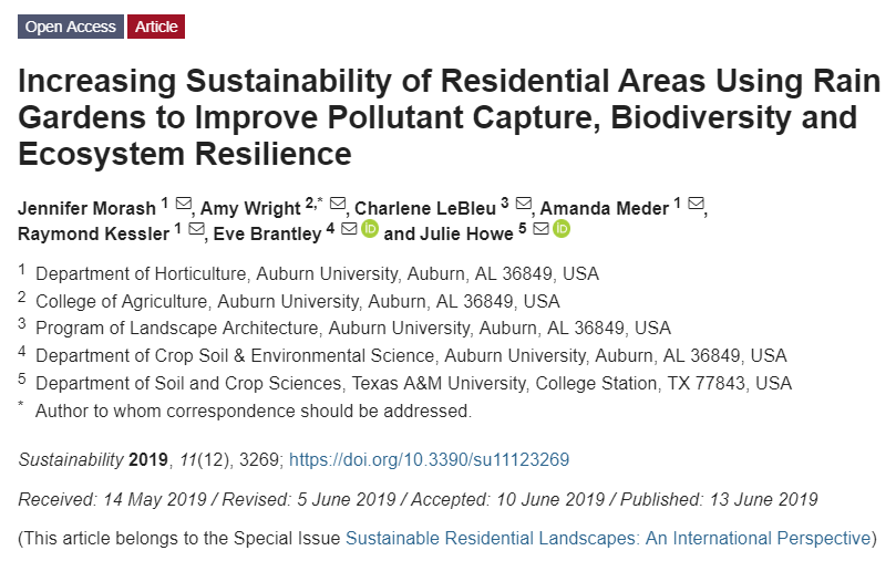 Increasing #Sustainability of #Residential Areas Using #RainGardens to Improve #PollutantCapture, #biodiversity and #ecosystem #resilience by Jennifer Morash and researchers from @AuburnU @tamusoilcrop @brantef #greeninfrastructure #gardens Online at https://www.mdpi.com/2071-1050/11/12/3269 …pic.twitter.com/Vymsnyxm3H