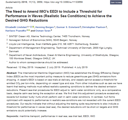 #mdpisustainability The Need to Amend IMO’s EEDI to Include a Threshold for Performance in Waves (Realistic Sea Conditions) to Achieve the Desired GHG Reductions https://www.mdpi.com/2071-1050/11/13/3668 … #maritime #Transportationpic.twitter.com/1JZzlflawg
