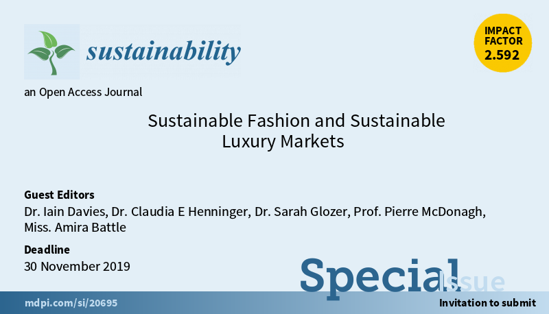 Special Issue "Sustainable #fashion and Sustainable #Luxury_Markets" invites submissions on sustainable business models, sustainable market-making and alternative models of #consumption. #marketing #brand_management