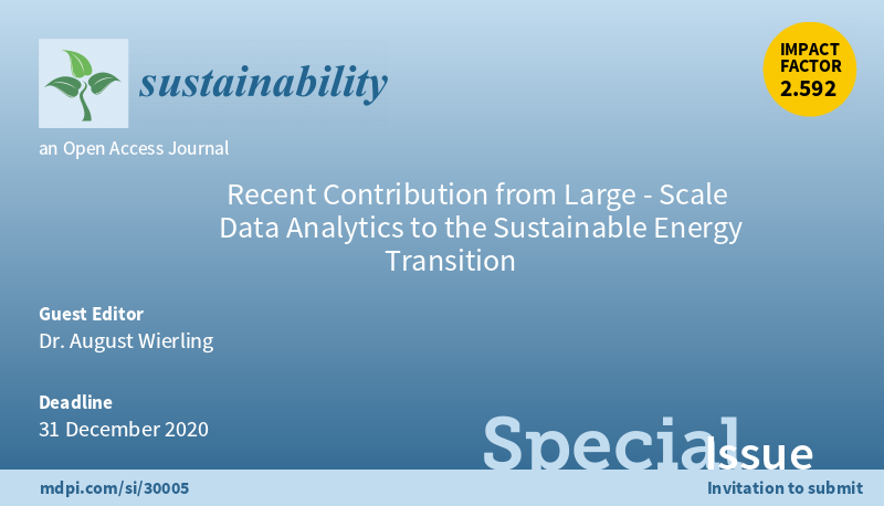 New special issue "Recent Contribution from Large-Scale #DataAnalytics to the Sustainable #EnergyTransition", edited by Dr. August Wierling from @hvl_no.
