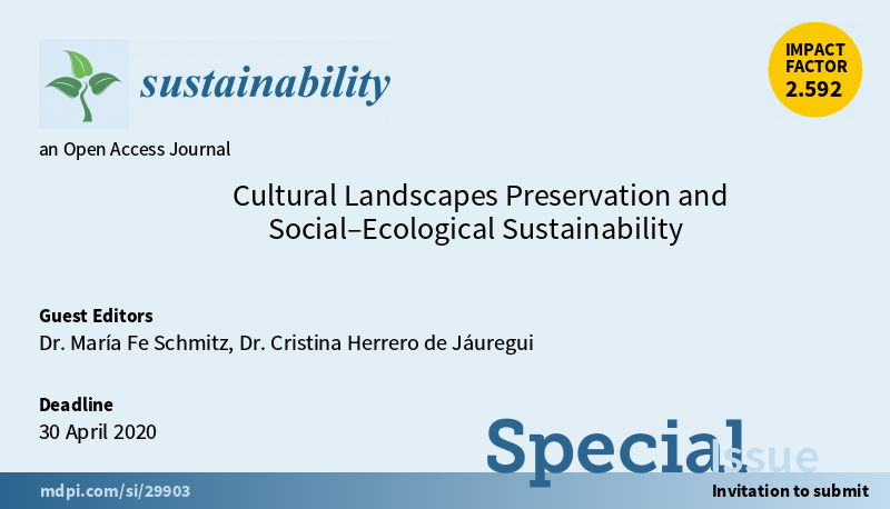 Special Issue “#Cultural #landscapes #preservation and Social–Ecological Sustainability” is open for submission. Guest Editors are Dr. María Fe Schmitz and Dr. Cristina Herrero de Jáuregui from @UCMadrid