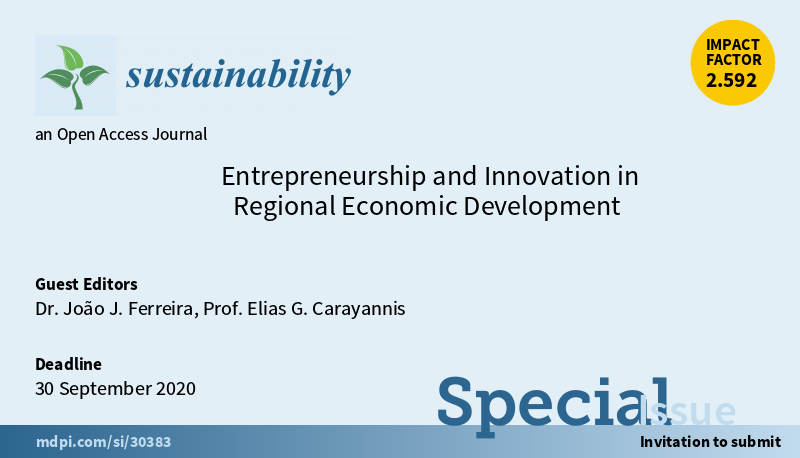 New Special Issue “#Entrepreneurship and #innovation in #Regional #EconomicDevelopment” is open for submission.