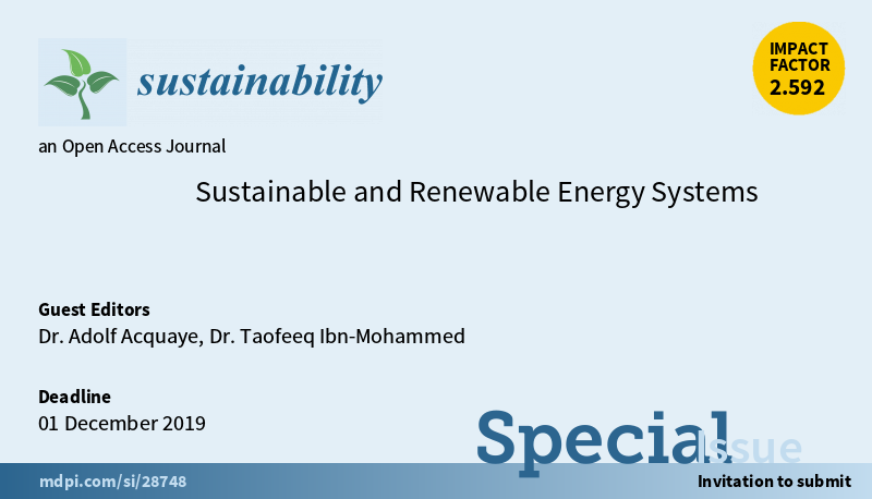 Special Issue “Sustainable and #RenewableEnergy Systems” is open for submission. Guest Editor are Dr. Adolf Acquaye from @UniKent and Dr. Taofeeq Ibn-Mohammed from @warwickuni