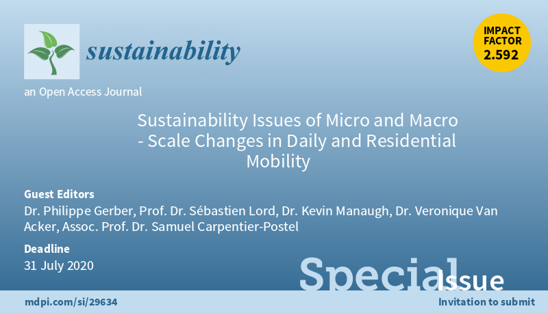 #mdpisustainability New Special Issue on #residental #Mobility #Behaviouralchanges #transport #Mobilitybiographies #Travelmodechoice @Phil_GerberLux @KManaugh @samcarpentier @LISERinLUX @UMontreal @mcgillu @univamu