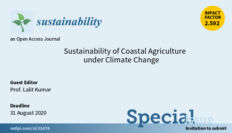 Special Issue #sustainability of #coastal #Agriculture under #ClimateChange” welcomes submission.