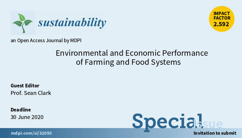 Special Issue “Environmental and Economic Performance of #farming and Food Systems” welcomes submissions. Guest editor is Prof. Sean Clark from @bereacollege