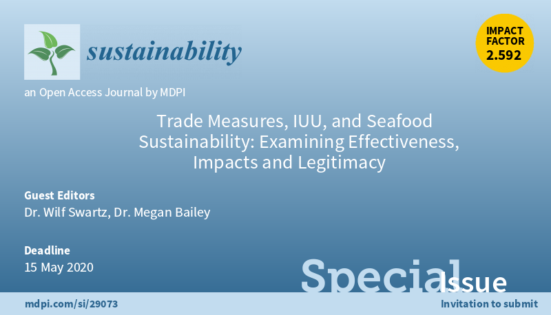 #mdpisustainability Special Issue guest-edited by Dr. Wilf Swartz @WilfSwartz and Dr. Megan Bailey @fishgovernance is open for submissions! #seafoodmarkets #tradepolicies #fisheries #Sustainablefisheries #fisheriesgovernance @UBC @DalScience @nereusprogram