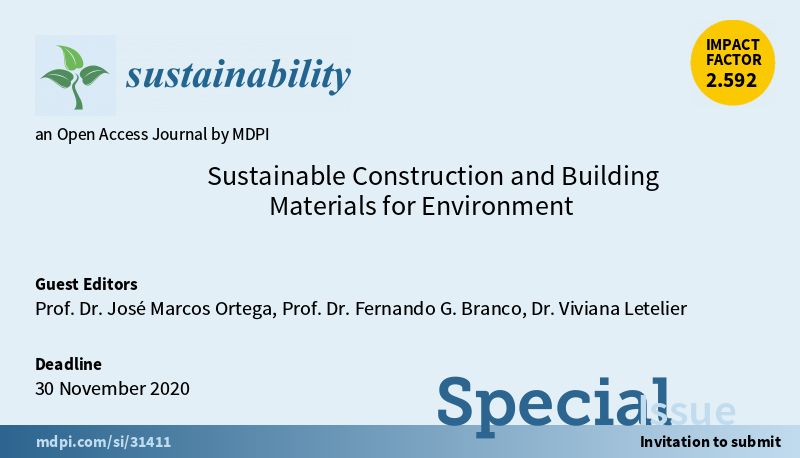Glad to share a new special issue "Sustainable #construction and #building #materials for Environment". Welcome to submit your work at https://www.mdpi.com/journal/sustainability/special_issues/materials_environment … #CivilEngineering #BIM #greenbuilding #concretepic.twitter.com/3m0KC3LBNg