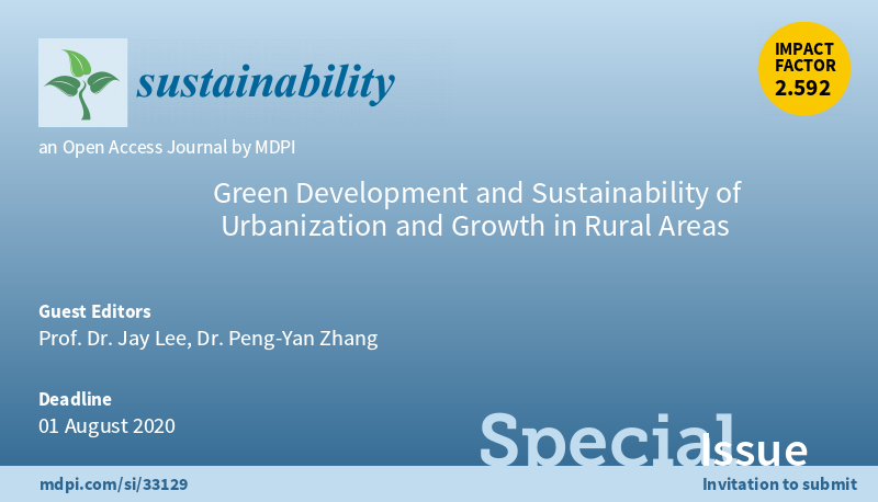 Special Issue “Green Development and #sustainability of #Urbanization and Growth in Rural Areas” welcomes submissions. #greentechnology #SustainableDevelopment