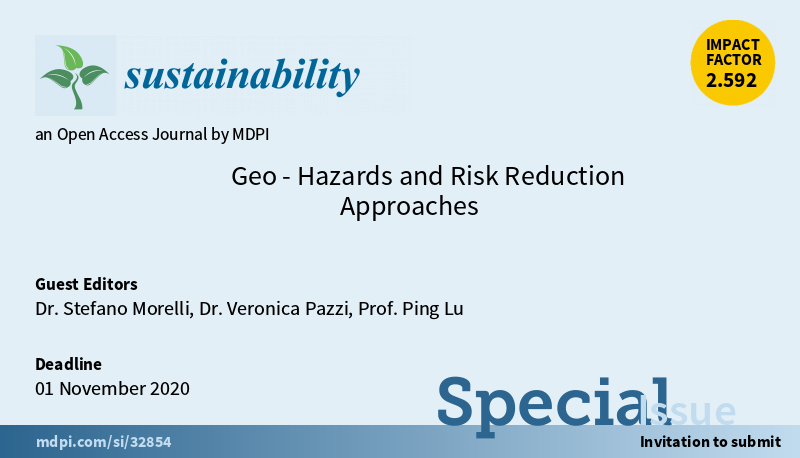 Special Issue "Geo-Hazards and Risk Reduction Approaches" welcomes submission. #ClimateChange #disaster #riskmanagement