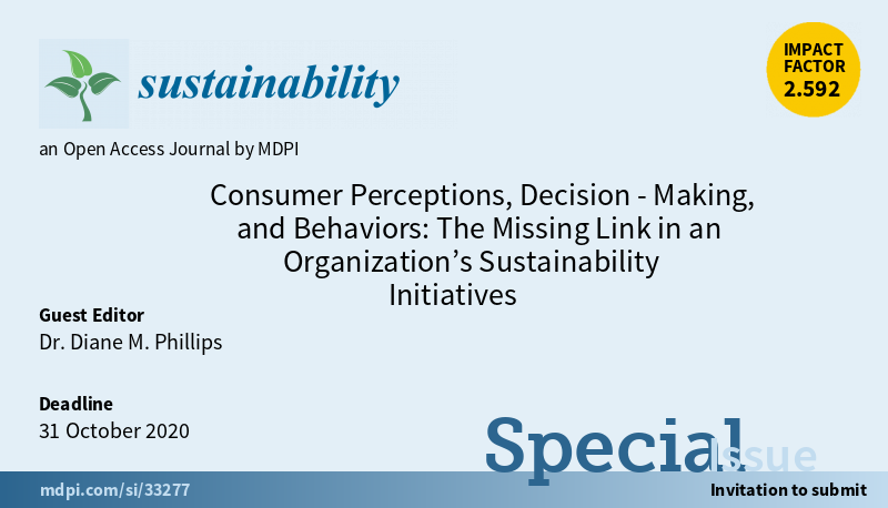 New special issue “Consumer Perceptions, Decision-Making, and Behaviors: The Missing Link in an Organization’s Sustainability Initiatives” is open for submission. https://www.mdpi.com/journal/sustainability/special_issues/Consumer_Perceptions_Decision_Making_Behaviors … edited by Dr. Diane M. Phillips from @saintjosephs (submission deadline: 31 October 2020)pic.twitter.com/bUrq5uqMul