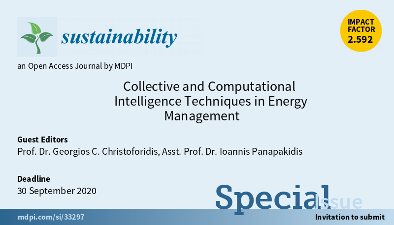 New special issue “Collective and Computational Intelligence Techniques in Energy Management” is open for submission. https://www.mdpi.com/journal/sustainability/special_issues/Intelligence_Energy … edited by Prof. Dr. Georgios C. Christoforidis and Dr. Ioannis Panapakidis #AI #renewableenergy (submission deadline: 30 September 2020)pic.twitter.com/8XgXcupboN