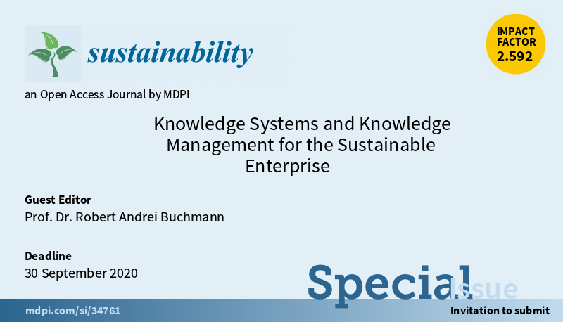 Special Issue " #Knowledgesystems and #Knowledgemanagement for the Sustainable #enterprise " welcomes submissions. Editor is Prof. Robert Andrei Buchmann @UnivBabesBolyai