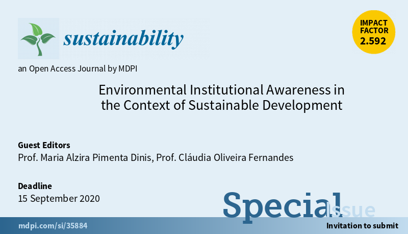 Special Issue "Environmental Institutional Awareness in the Context of #SustainableDevelopment" welcomes submissions. Edited by Prof. Maria A. P. Dinis and Prof. Cláudia O. Fernandes @UPorto