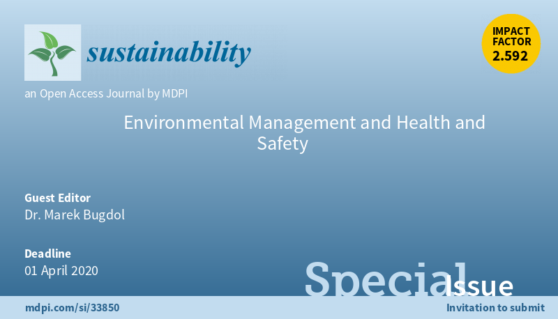 Special Issue " #EnvironmentalManagement and #Health and #Safety" welcomes submissions. Edited by Dr. Marek Bugdol @JagiellonskiUni