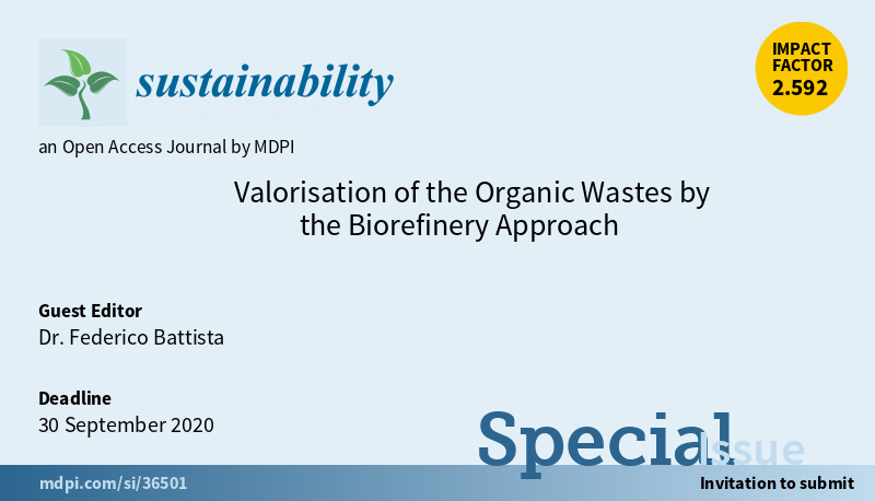 More at:https://www.mdpi.com/journal/sustainability/special_issues/ValorisationOrganicWastes_BiorefineryApproach …