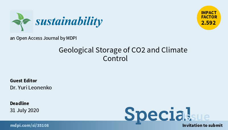 Special Issue "Geological Storage of #CO2 and #ClimateControl " welcomes submissions. Edited by Dr. Yuri Leonenko @UWaterloo