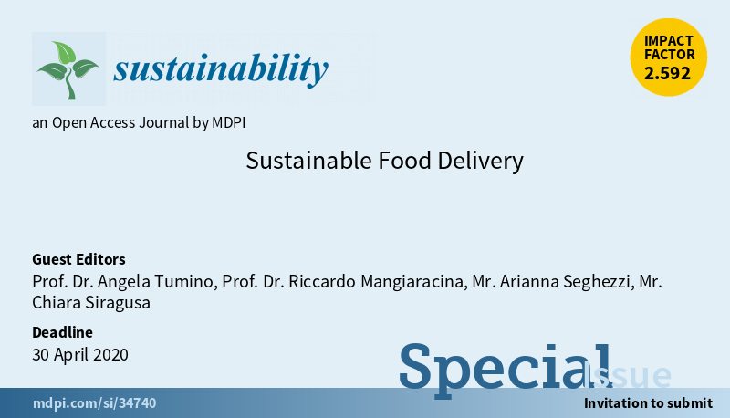 Special Issue "Sustainable #FoodDelivery" welcomes submissions. Edited by @angela_tum @RiMangia Mr. Arianna Seghezzi and Mr. Chiara Siragusa @polimi