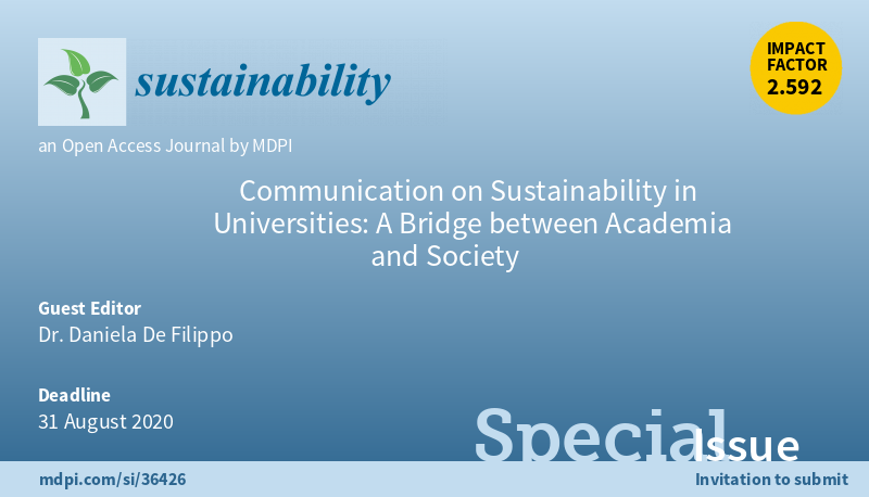 Special Issue "Communication on Sustainability in Universities: A Bridge between Academia and Society" welcomes submissions. Edited by Dr. Daniela De Filippo @uc3m
