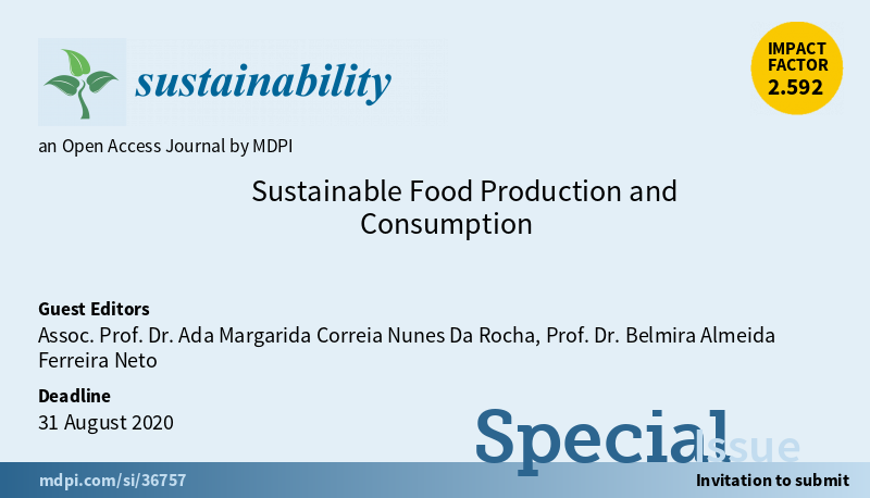 Special Issue "Sustainable Food Production and Consumption" welcomes submissions. Edited by Dr. Ada Rocha and Dr. Belmira Neto @UPorto