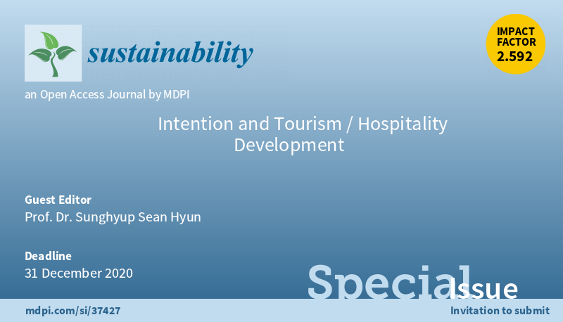 Special Issue "Intention and #Tourism/#Hospitality Development" Edited by Prof. Dr. Sunghyup Sean Hyun