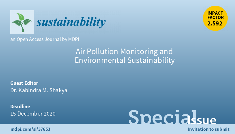 Special Issue "#AirPollutionMonitoring and Environmental Sustainability" welcomes submissions. Edited by Dr. Kabindra M. Shakya @VillanovaU