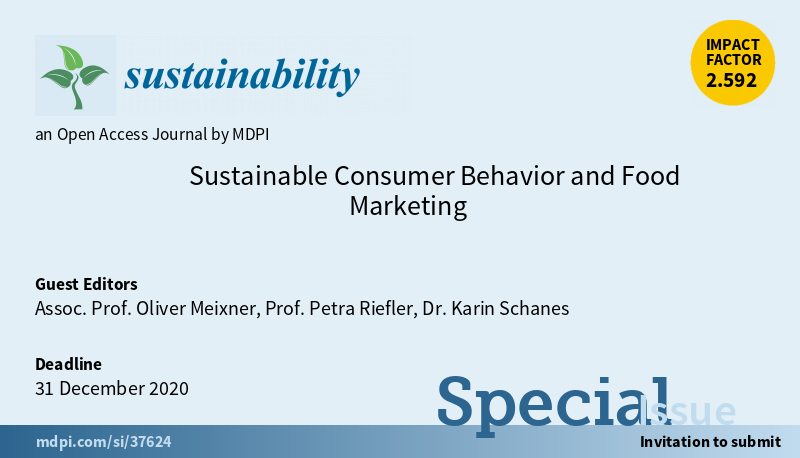 Special Issue "Sustainable #ConsumerBehavior and #FoodMarketing" welcomes submissions. Edited by Prof. Oliver Meixner, Prof. Petra Riefler and Dr. Karin Schanes @BOKUvienna