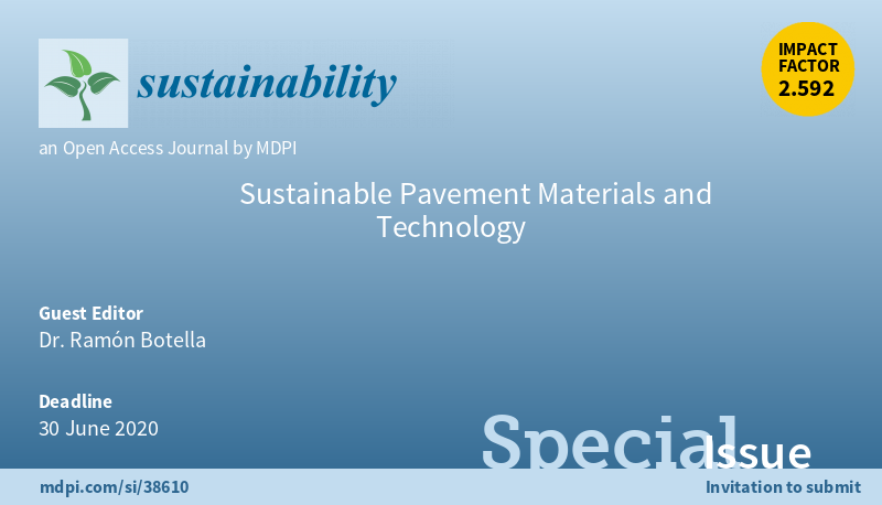 New Special Issue "Sustainable #PavementMaterials and Technology" is open.